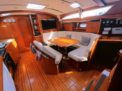 This beautiful, spacious Jeanneau Sun Odyssey has a stunning teak interior in immaculate condition. The 3 cabins with 2 heads layout have a double owner’s cabin in the bow with an en-suite head and two cabins in the stern with the second head located next to the galley; both heads are equipped with a shower and a Jabsco marine manual toilet (2025). All of the double berths have new (2024) special breathable mattresses for boats and premium quality 14cm Flexima and pillows for your comfort. There is a folding bed system with hydraulics installed (2024) in the bow cabin to take advantage of all the storage under the bed. In the salon the main table is on hydraulic legs with two custom cushions that allow converting the central space into a large bed for extra guests. The galley has ample counter space with large double sinks and is equipped with an independent chest-style fridge and freezer with digital thermostat, and an induction cooktop and electric oven for greater safety. For extra comfort there are 2 air conditioners: Climma Marine Air Conditioning Compact 12 R EH heat pump - one for the bow cabin and main cabin and the other for the stern cabins.