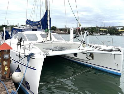 Introducing S/V Amazing! This 2004 Catana 471 Ocean Class catamaran was designed by Christophe Barreau and built by Catana in France. There were just under 90 hulls built of the 471s, and the Ocean Class version of these catamarans were built from 2003 to 2007. One of the reasons that these boats are still so popular is that they were built to last. These cats were built using two outer hull molds along with one deck mold, ensuring a seamless and durable design. The boat's daggerboard trunks have been meticulously engineered to be seven times stronger than the daggerboards themselves, all structural bulkheads are constructed with advanced Nidacore honeycomb core, reinforced with carbon fiber on both sides, delivering a robust framework that enhances the boat’s overall integrity and performance. The adjustable daggerboards allow for versatility in various sailing conditions with a minimum draft of 1.25m to a maximum of 2.50m.